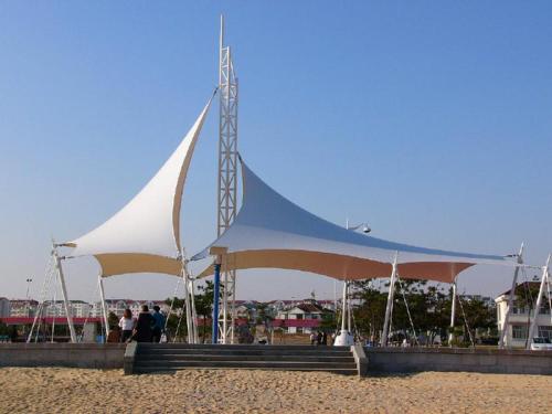 1.采光性。照射到屋面的陽光以漫射光的情勢透射到室內。從內部看,屋面成為一個連續的光明面,其強度因屋面與太陽的相對地位而變更。 張力膜結構車棚室內空司的采光系數(即室內外外...